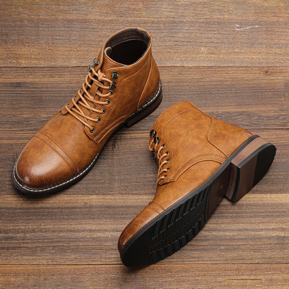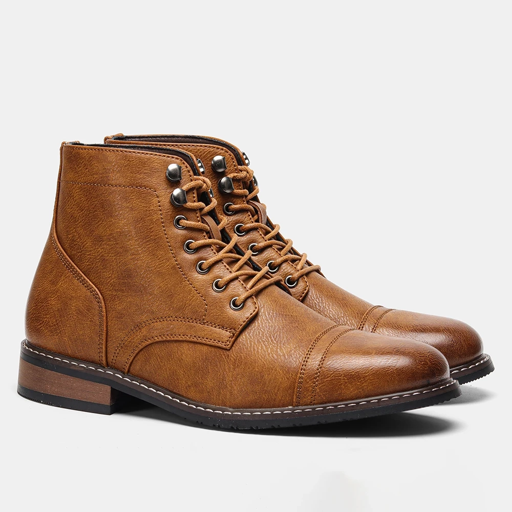 Elevate your style with metal decorations, adding a touch of sophistication to these classic men’s boots.